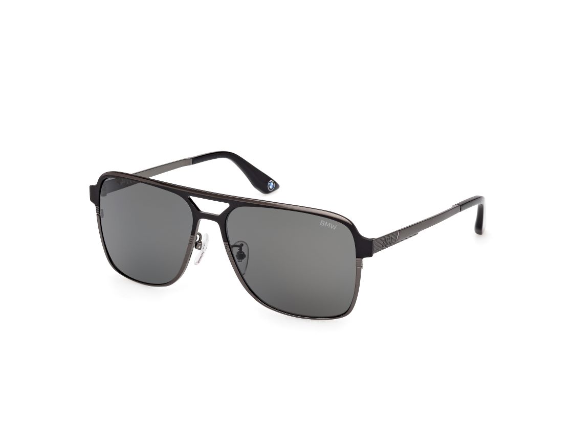 - BMW logo on the right temple for signature branding.