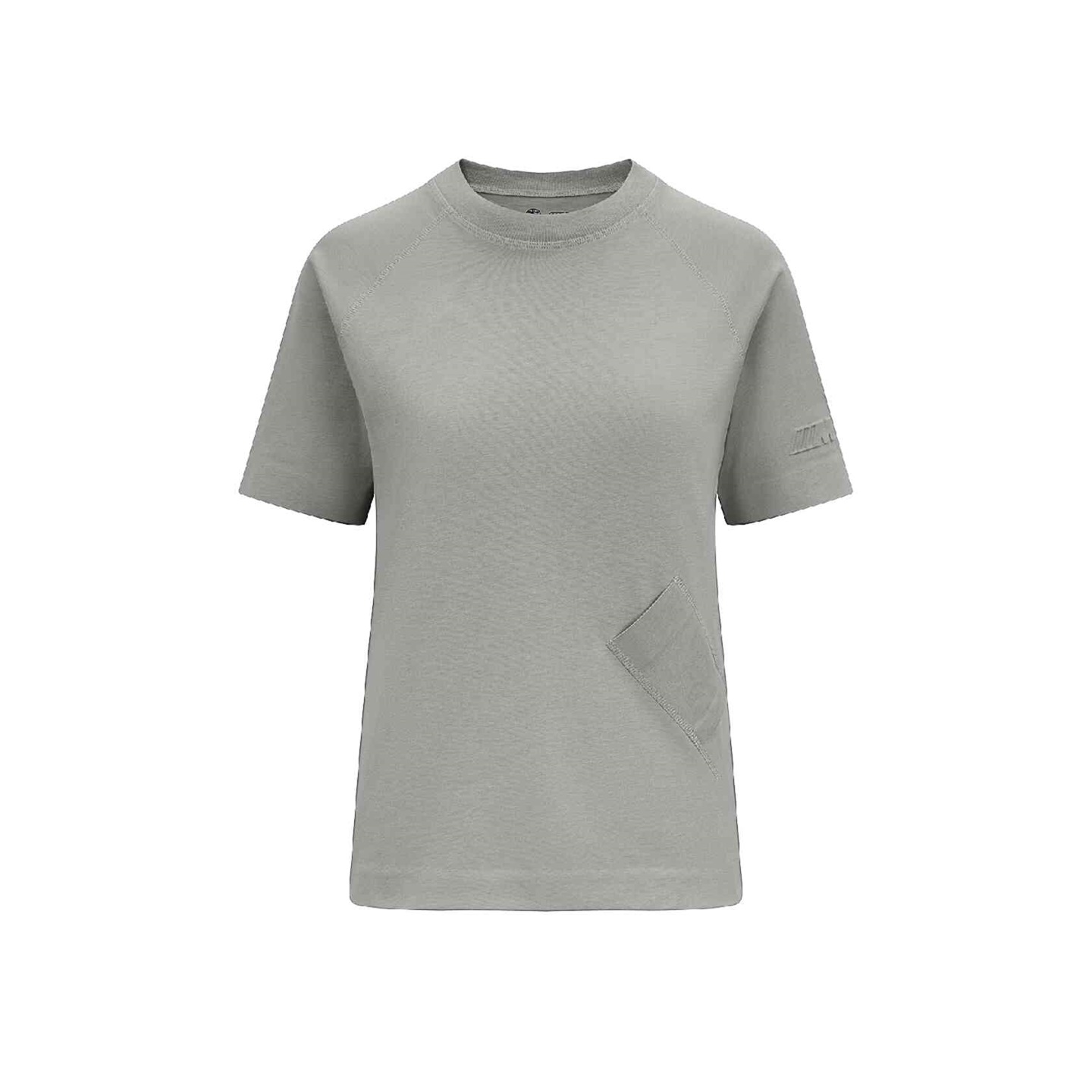 Gray BMW M T-shirt for women with small embossed M logo print on the left sleeve.
