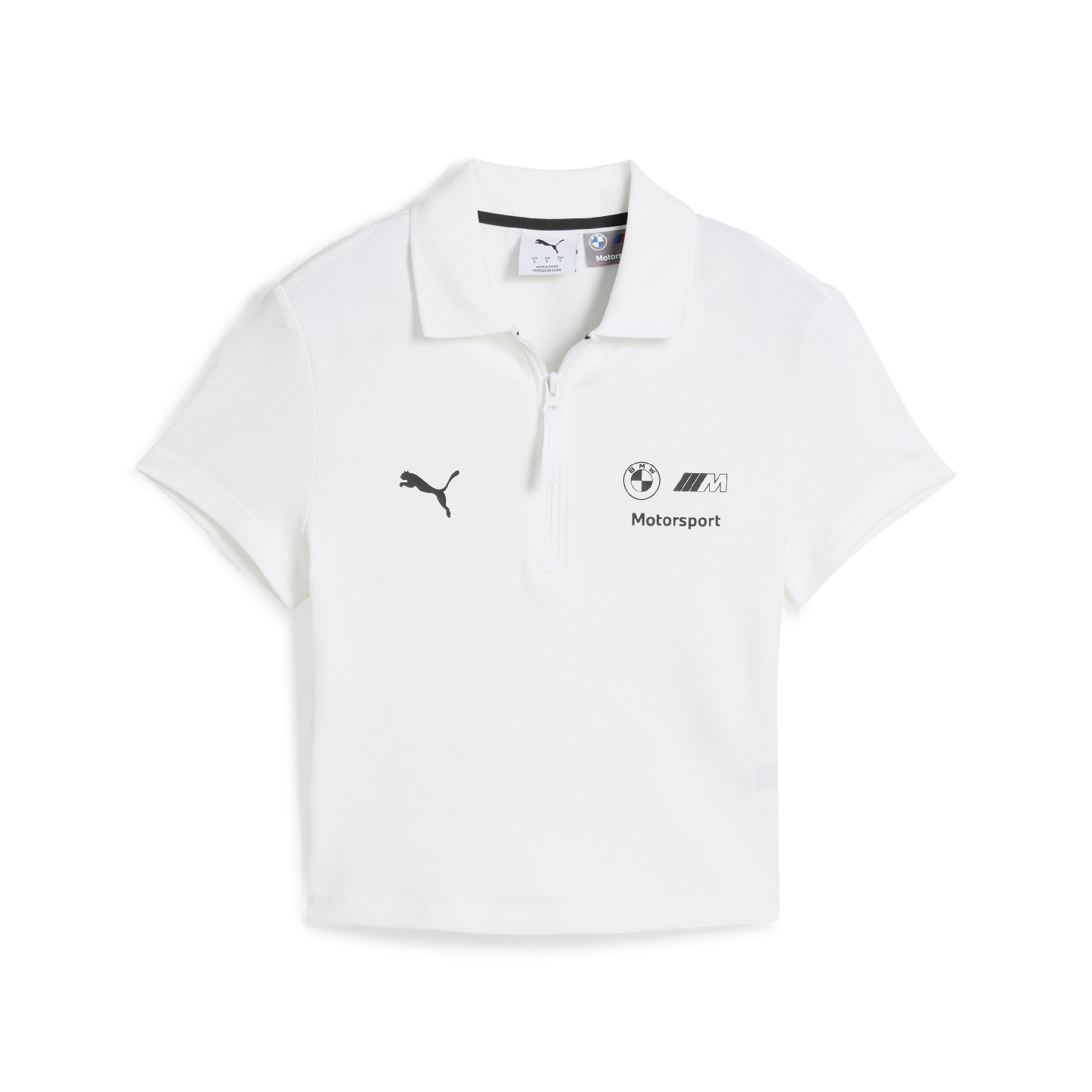 The BMW MMS WMN Classic Baby Polo impresses with its cropped fit, sporty design with BMW M Motorsport logo print and PUMA logo print.