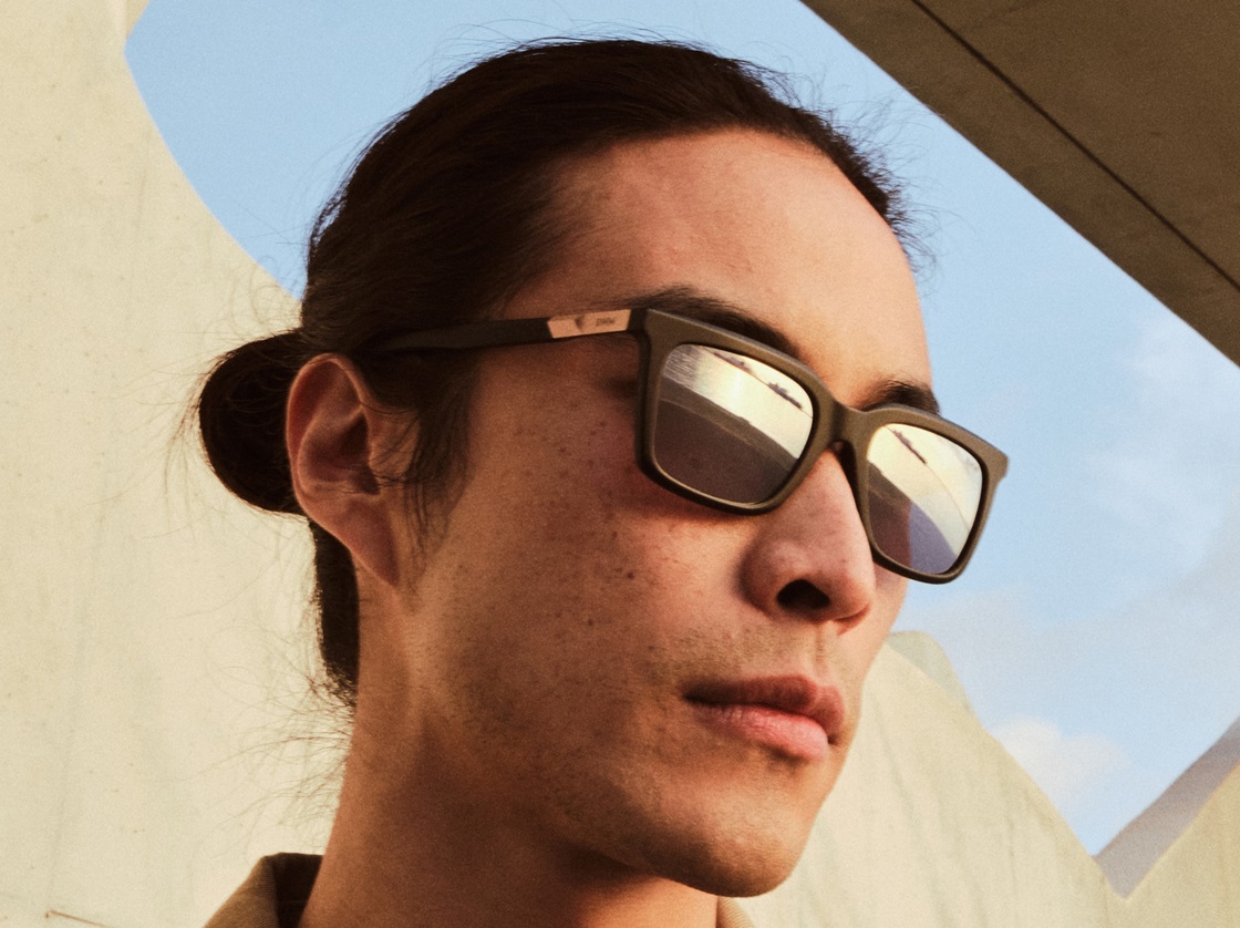 - Injection-molded temples with acetate construction.